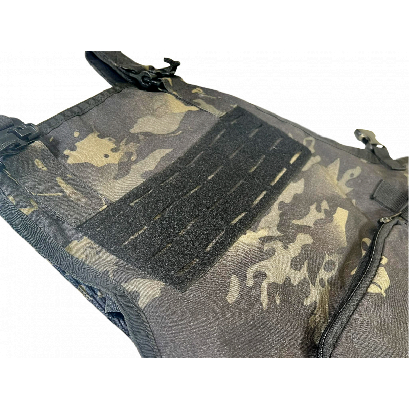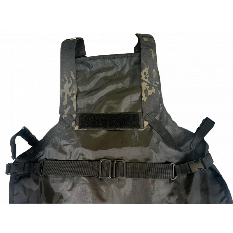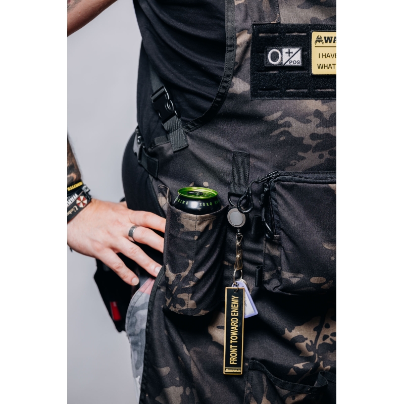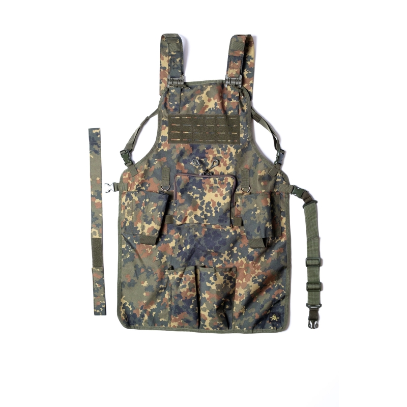 Tato zástěra z odolné tkaniny Cordura je vybavena laserem řezaným (laser-cut) molle panelem na hrudi, který umožňuje připevnění sumek pro grilovací výzbroj a zároveň na něj lze díky suchému zipu (velcro) připevnit i nášivky (morale patch).
