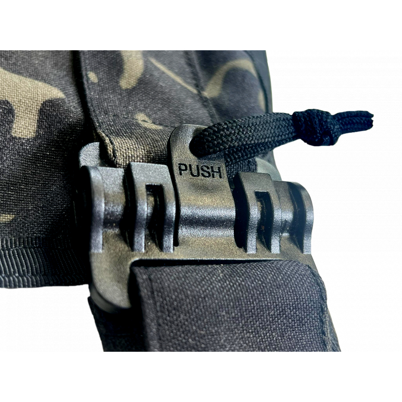 Dále se zde nacházejí dva D-kroužky (ve tvaru písmene D) pro připevnění karabin či k zaháknutí grilovacích kleští, protože operátor musí mít své zbraně vždy po ruce.