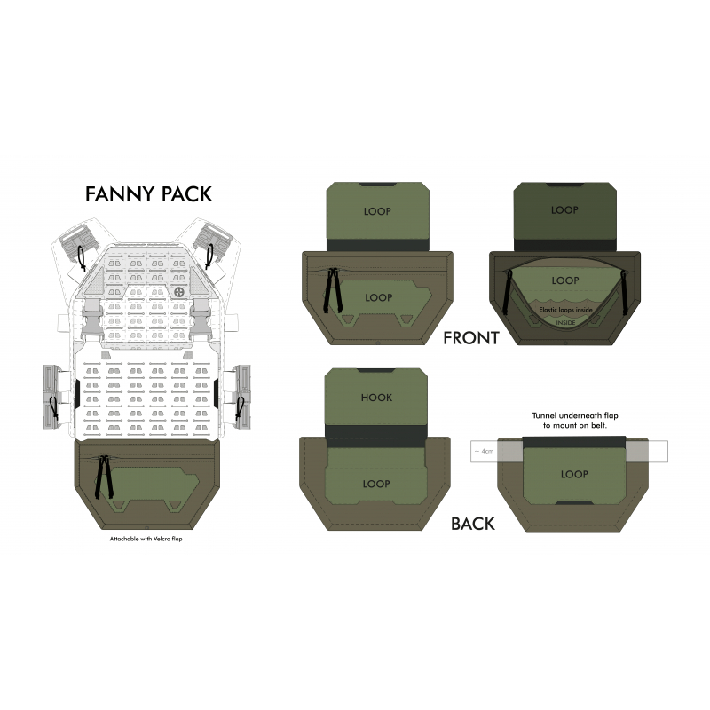 Na chest-rigu nebo nosiči plátů jiných výrobců než Novritsch si musíte pohlídat rozměry a způsob uchycení (břišní sumka používá suchý zip háček, na nosiči tedy musí být smyčka.