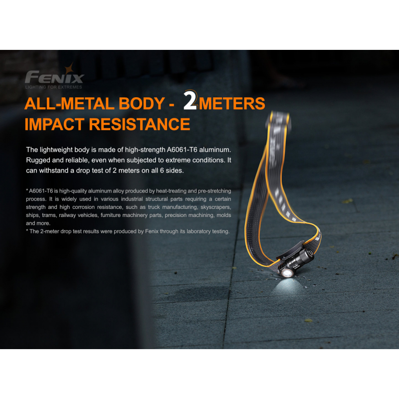 Celokovová konstrukce zajišťuje vysokou odolnost, optimální chlazení a zároveň je plně vodotěsná dle standardu IP68 až do hloubky 2 metry pod vodou. Praktičnost čelovky zvyšuje možnost vyjmout světlo z hlavového držáku a používat ji i jako malou kapesní svítilnu. Navíc je čelovka opatřena ocelovou snímatelnou sponou, takže ji snadno uchytíte na kapsu či popruh. Čelovka Fenix HM51R V2.0 je ideálním společníkem pro různorodé sportovní aktivity, výlety do přírody i do domácnosti a na práci.