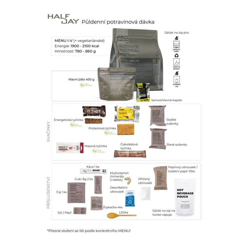 Potravinová dávka Ultimate Tactical Ration HALF-DAY od Pro Ration ve variantě Menu 3.
