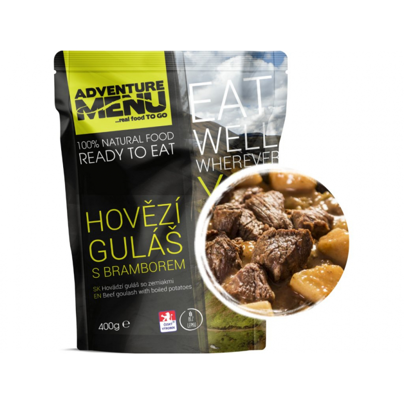 Hovězí guláš s bramborem od Adventure Menu kombinuje kvalitní hovězí maso, brambory, cibuli, papriku a rajčata s výběrem speciálních koření, poskytující ti vysokou energetickou hodnotu nezbytnou pro airsoftové výzvy. Jeho příprava je rychlá a jednoduchá – stačí zahřát a můžeš okamžitě konzumovat, ať už jsi kdekoliv. Odolné, lehké a hermeticky uzavřené balení chrání tvůj pokrm před vnějšími vlivy a zároveň je snadno přenosné. Díky dlouhé trvanlivosti tohoto pokrmu není potřeba chlazení, což ti umožňuje mít vždy po ruce výživné a chutné jídlo, připravené na tvé outdoorové dobrodružství.
