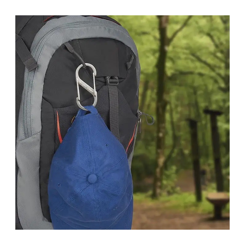 Dvoustranný oddělený vstup karabiny nabízí nepřeberné množství variant využití. Pojištění, upevnění, zavěšení taktického vybavení na výstroj, zavěšení klíčů, pouzder na mobil, kempovacího vybavení. Prostě téměř čehokoliv, co vás napadne. Pro maximální jistotu můžete vybavení upevnit přes oba vstupy na centrální část, nebo můžete pomocí S karabiny spojit více věcí dohromady. Menší varianty karabiny (velikost #1 až #2) jsou ideální pro zavěšení jednotlivých klíčů na záchytný kroužek nebo pro zajištění zipů batohů a kufrů spojením jejich jezdců apod. Středně velké S karabiny (velikost #3 až #6) použijete pro připevnění nebo spojení většiny běžného vybavení. Pitné lahve k batohům nebo opaskům, boty na batoh nebo na strom, rukavice a zásobníky na vestu, sekery a kleště na opasek nebo zeď, zahradnické vybavení na stěnu, nákupní tašky na držáky v autě. Ty největší (velikost #8 až #10) pak můžete využít na ty nejobjemnější předměty při táboření, kempování v garáži nebo na zahradě. Další výbornou vlastností je, že můžete použít rozdílné barvy pro různé vybavení nebo členy rodiny. Organizace vybavení tak bude ještě jednodušší.
