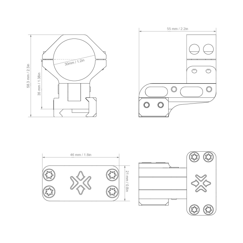 Hledáte montážní kroužky, které udrží váš puškohled bez sebemenšího pohybu? Chcete spolehlivé uchycení optiky i pro silné ráže bez ztráty nástřelu? Potřebujete možnost nastavit úhel záměrné linie pro lepší balistickou korekci? Pak sáhněte po Vector Optics CANTILEVER nastavitelných kroužcích pro profesionální střelce. Tyto kroužky jsou vyrobené z vysokopevnostní hliníkové slitiny, která zaručuje extrémní tuhost a dlouhou životnost při zachování nízké hmotnosti. Díky 4 šroubům na každý kroužek je přítlak rovnoměrně rozložen a optika pevně zafixována bez rizika posunutí i při silném zpětném rázu. Kroužky jsou vybaveny T15 TORX šrouby pro bezpečné utažení a dlouhodobé používání. Matně černá povrchová úprava navíc skvěle ladí s taktickými zbraněmi a chrání povrch před poškozením i korozí. Kroužky jsou určeny pro montáž na standardní RIS lišty a představují ideální řešení montáže pro vojenské a lovecké puškohledy. Kroužky jsou kompatibilní s montážemi X-ACCU. Jeden kroužek má možnost nastavení výšky, čímž upravíte sklon/úhel optiky. Tento sklon umožňuje kompenzovat gravitační účinky na střelu, což může být výhodné při střelbě na velké vzdálenosti, například při sportovní střelbě nebo při loveckých aktivitách. Cantilever montáž je speciální typ montáže, která má prodloužené (vyosené) uchycení směrem dopředu. Tento design umožňuje posunout optiku dál před střelce, aniž by musela být uchycena přímo na vzdálenější části lišty. Cantilever montáže se používají především na AR-15 a obdobných platformách, kde je nutné zajistit správný oční reliéf (eye relief) pro puškohledy nebo LPVO optiky.