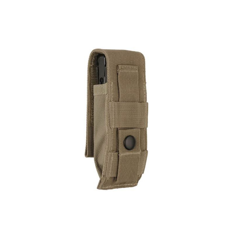 Pouzdro je uzavíratelné na suchý zip a na zadní straně je vybaveno popruhem k uchycení k opasku nebo na Molle vazbu.