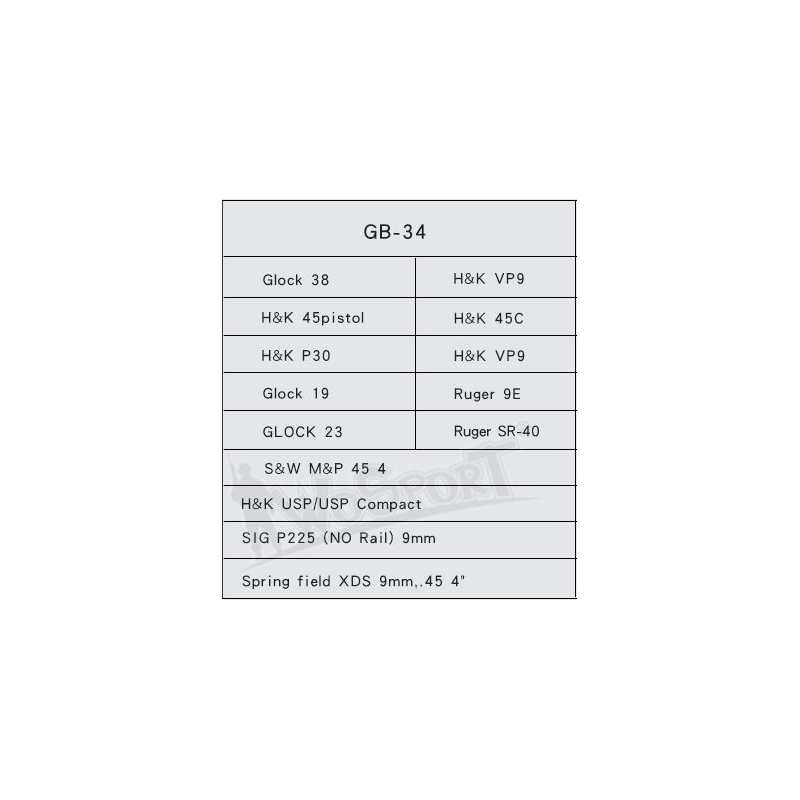 Univerzální opaskové pouzdro GB34 je vyrobené z odolného nylonu, který zajišťuje spolehlivou ochranu a dlouhou životnost pouzdra (holsteru). Pouzdro je navrženo s důrazem na bezpečnost při nošení zbraně a rychlé tasení.
