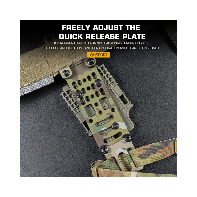 Modulární hliníková platforma pro holster od WoSporT v provedení Multicam (replika).