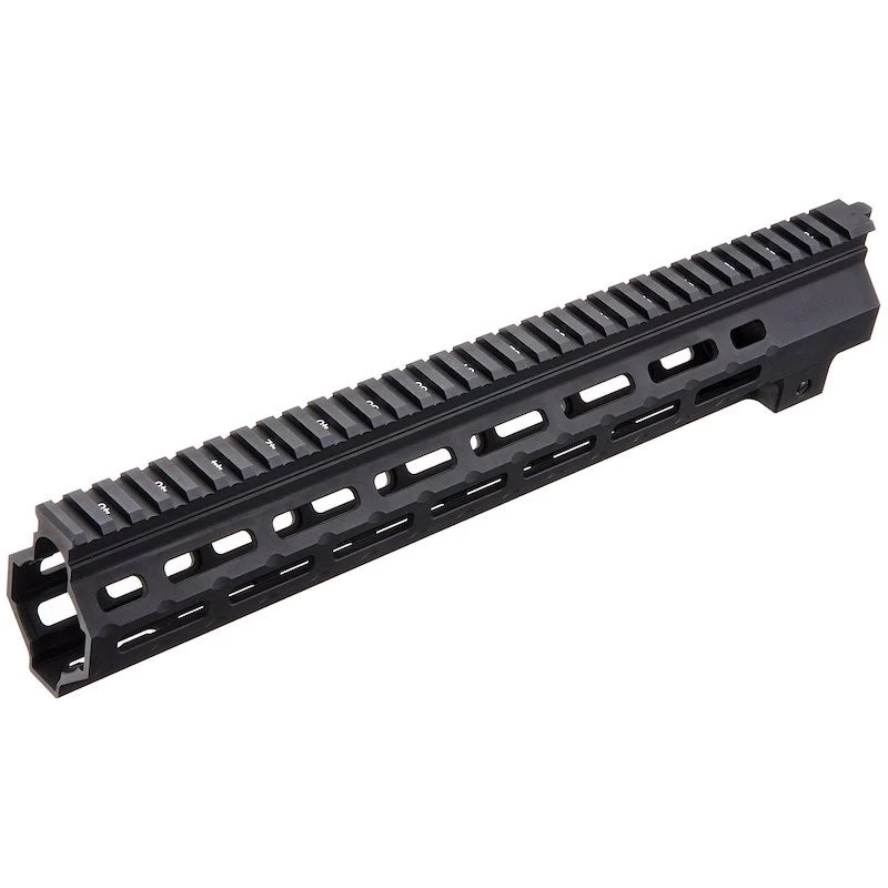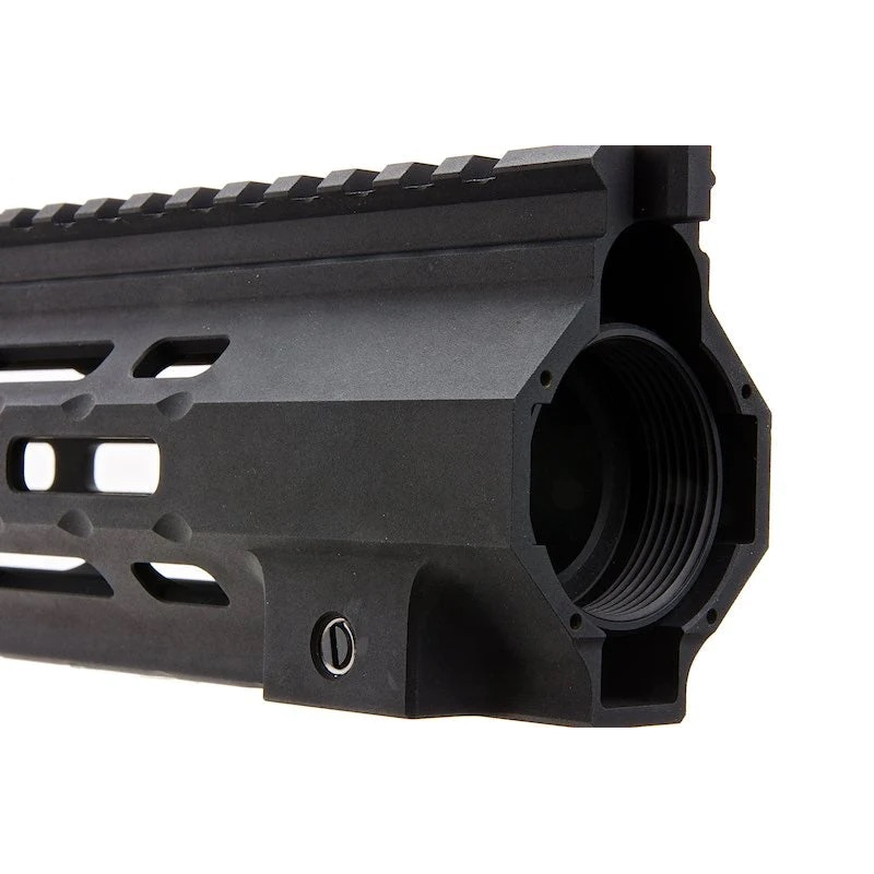 Předpažbí TYPE-M 416, se vyznačuje elegantní matně černou eloxovanou povrchovou úpravou, která nejenže působivě vypadá, ale nabízí také mimořádnou odolnost. Jeho horní lišta ve specifikaci Mil-Spec zajišťuje kompatibilitu s širokou škálou příslušenství, což vám umožní přizpůsobit si sestavu podle svých potřeb.