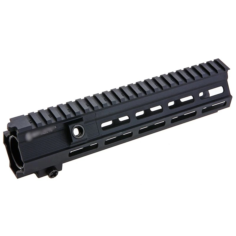 Předpažbí MK15 SUPER MODULAR 416, se vyznačuje elegantní matně černou eloxovanou povrchovou úpravou, která nejenže působivě vypadá, ale nabízí také mimořádnou odolnost. Jeho horní lišta ve specifikaci Mil-Spec zajišťuje kompatibilitu s širokou škálou příslušenství, což vám umožní přizpůsobit si sestavu podle svých potřeb.