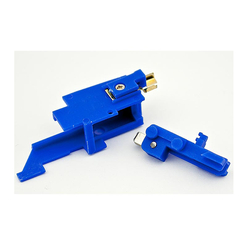 Náhradní spoušťové kontakty pro elektrické zbraně s mechaboxem verze 3. Tedy AK, G36..apod. Součástí balení jsou jak kontakty, tak i člunek. Barva plastu se může lišit!