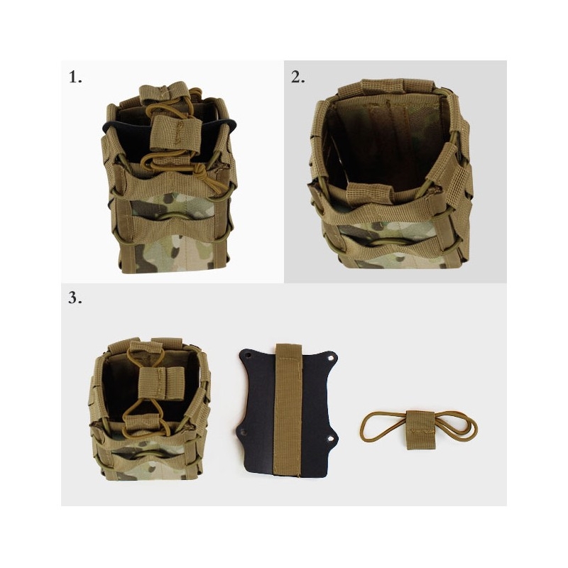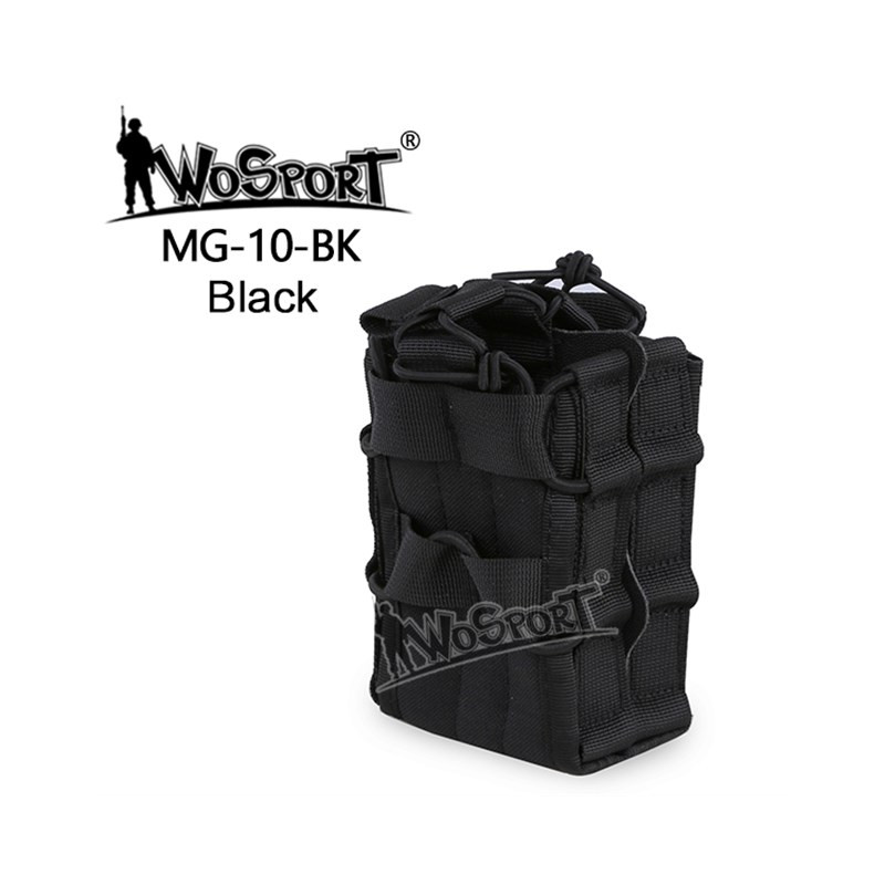 DOUBLE BAG MOLLE sumka od WoSporT je rychlá a maximálně univerzální zásobníková sumka pro přenášení 2 puškových zásobníků najednou. Na sumce oceňujeme její schopnost přizpůsobení se různým typům zásobníků, takže nemusíte před každou akcí upravovat nosič plátů podle typu zbraně. To se obzvlášť cení mezi námi airsofťáky, kteří vlastníme krásnou sbírku zbraní s odlišnými zásobníky. Nastavení obvodu zajišťuje elastické nastavitelné lanko, které udrží zásobníky pevně v sumce i při běhu, plazení nebo prudkých změnách směru pod nepřátelskou palbou. Odolný nylon 1000D zaručuje odolnost sumky. Vychytávkou je vnitřní dělící vložka sumky, která tvoří přepážku mezi zásobníky, tu lze totiž kompletně vyjmout a získat otvor 85 × 60 mm vhodný třeba pro airsoftové granáty.