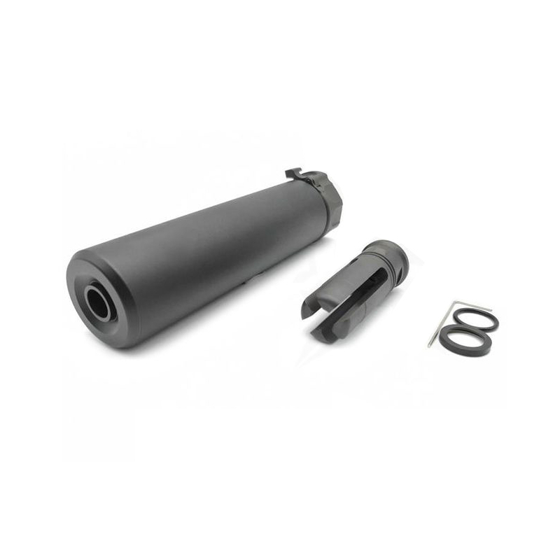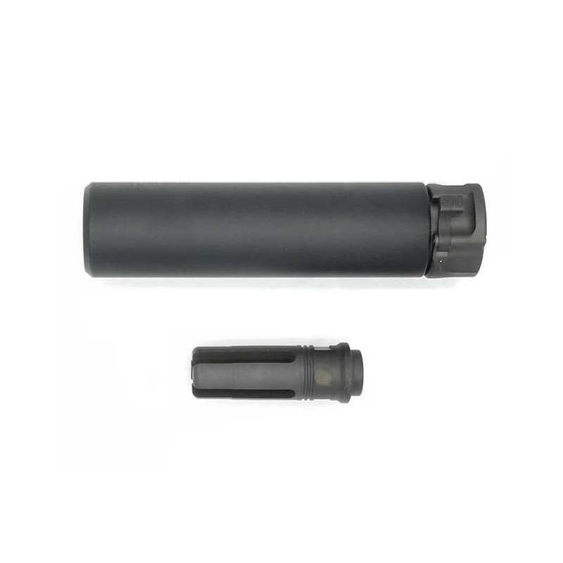 Tělo tlumiče je vyrobeno z odolného hliníku 6061 s realistickým hlubokým ražením SUREFIRE a povrchovou úpravou, zatímco drobné díly zamykacího mechanismu jsou z oceli pro zvýšení odolnosti. Součástí balení je také tlumič výšlehu (flash hider) SOCOM 4 s QPQ povrchovou úpravou. Tlumič výšlehu se instaluje na zbraň pomocí 14mm levotočivého závitu (CCW). Následně se na něj připevňuje i samotný tlumič hluku, a to jednoduše pomocí rychlo-upínacího systému (QD). Stačí nasadit tlumič do vodících drážek a následně otočit základnu tlumiče. Tento tlumič tak kombinuje realistický design s vysokou funkčností.