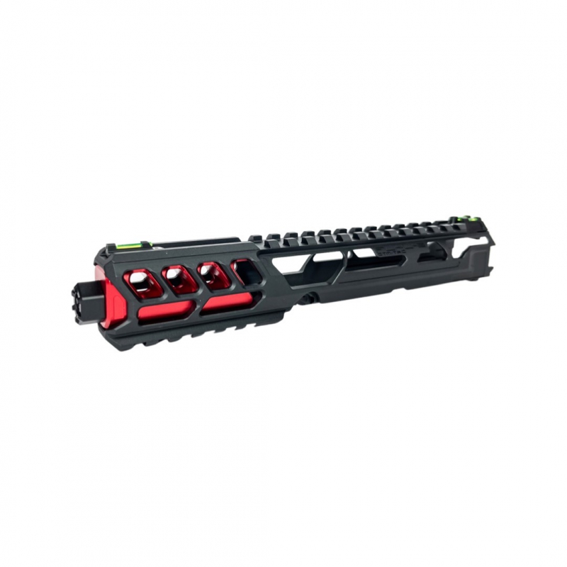 Hledáte odlehčený závěr s agresivním vzhledem, který dá vaší pistoli AAP-01 úplně nový charakter? Chcete lepší a rychlejší manipulaci s pistolí díky nižší hmotnosti a zároveň odolnost CNC obráběného hliníku 6061? Potřebujete horní díl těla, který je připravený na montáž zaměřovače, svítilny i nasvětlovacího tlumiče? Pak je tu FUKU-2 Upper Set V2 – dlouhá CUTOUT verze, ještě o 20 gramů lehčí než verze GENERAL, s agresivně vyfrézovanými odlehčovacími otvory a špičkovým zpracováním. Tento horní díl těla je vybaven dlouhou horní RIS lištou pro kolimátor, krátkou spodní RIS lištou pro grip či svítilnu, standardním 14mm CCW závitem s CNC krytkou a kompletní sadou světlovodných mířidel. Celková hmotnost pouhých 175,6 g přidává dynamiku a rychlost, aniž by utrpěla pevnost sestavy. Pokud chcete z AAP-01 udělat skutečně výjimečnou zbraň, FUKU-2 Upper Set V2 je volba, která dává smysl. Pokud chcete ale ze své AAP pistole udělat skutečný unikát, doplňte tento set o další vnější díly od CTM, které naleznete v naší nabídce. A co je krásné na pohled, mělo by být vymazlené i uvnitř, a jelikož jsme kamarádi s výhodami, máme pro vás samozřejmě i ty nejlepší vnitřní upgrade díly pro AAP-01. Teď už je to jen na vaší fantazii.