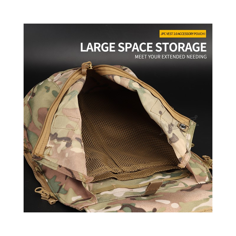 Prostorný multifunkční batoh, který je určen pro vestu typu JPC, ke které se připne pomocí zipů na stranách. Hlavní kapsa je prostorná a pojme spoustu vybavení, které můžete rozdělit do kapes ze síťoviny, nebo jej uchytit za elastické popruhy.