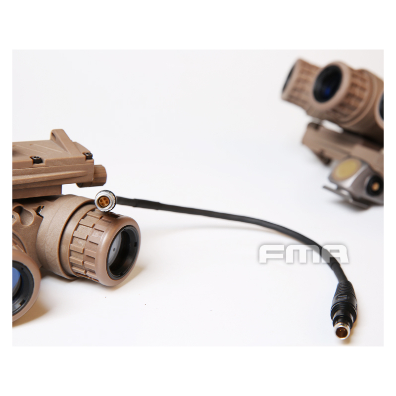 This connection cable is designed to link the imitation GPNVG18 night vision device by FMA with a battery box (power source), ensuring full functionality of the device. The cable is made from high-quality aircraft carrier wire, providing excellent resistance to wear and mechanical damage.