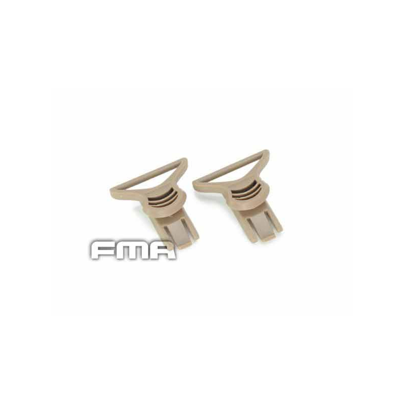 This mount by FMA is designed for attaching protective goggles or masks to helmets equipped with ARC rails, such as helmets like OPS FAST, MICH, and other similar models. It consists of two parts: the loop for the goggle/mask strap and the ARC mounting base. These two parts can be easily detached, allowing for quick removal of the goggles or mask without removing the mount from the helmet.