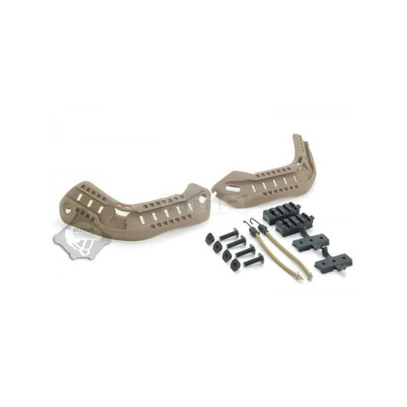 Ear protectors for helmets with ARC rails by FMA in Dark Earth. Provides protection for ears and the sides of the face. Ideal for ballistic helmets OPS FAST, MICH and their airsoft replicas. Made from soft rubber. Includes the mounting system. Cannot be combined with tactical headsets.