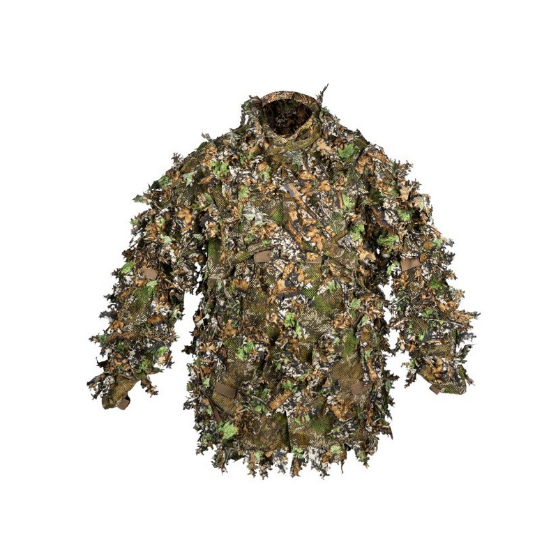 Silent snap button closure ensures no noise and the improved 3D leaf pattern disrupts the shape of the wearer, which enhances camouflage effectiveness.