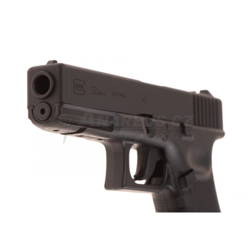 This faithful replica of the Glock 22 GNB CO2 pistol is equipped with a durable metal slide with precise Glock markings. With its dimensions and weight, it resembles a real pistol and safely fits into standard Glock holsters of the respective size category.