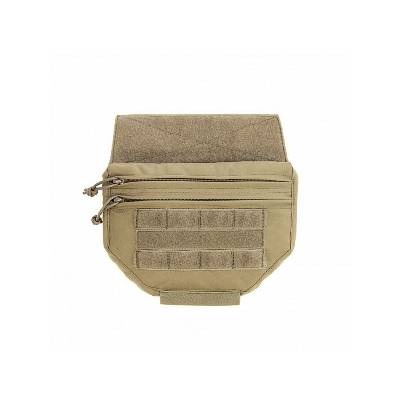 On the underside there are 2 elastic loops for chem lights and or markers. The Drop Down Pouch can also be used as an armour add on for lower abdomen protection, we have included a rear pocket which allows a level 3a soft armour insert to be added.