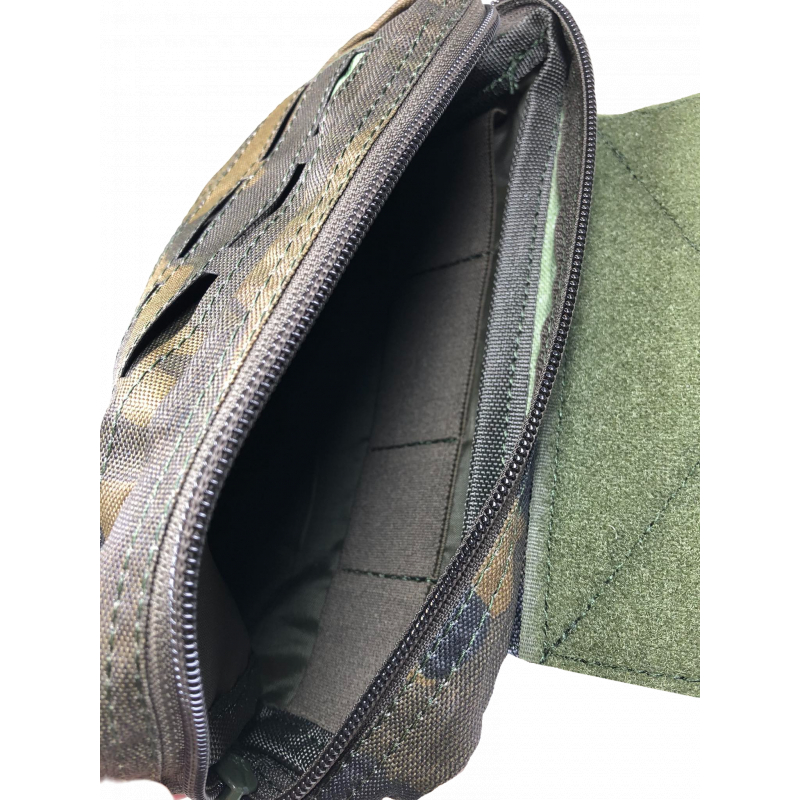 The pouch is designed to fit the bottom of our SPIDER MPC vest or any other plate carrier or chest rig that has standard velcro panels, making it a versatile choice for those who change gear frequently.