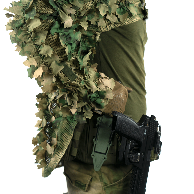 The 3D Leaves break up the silhouette of your body and your gear. Your enemies will have a hard time distinguishing you from your surroundings.