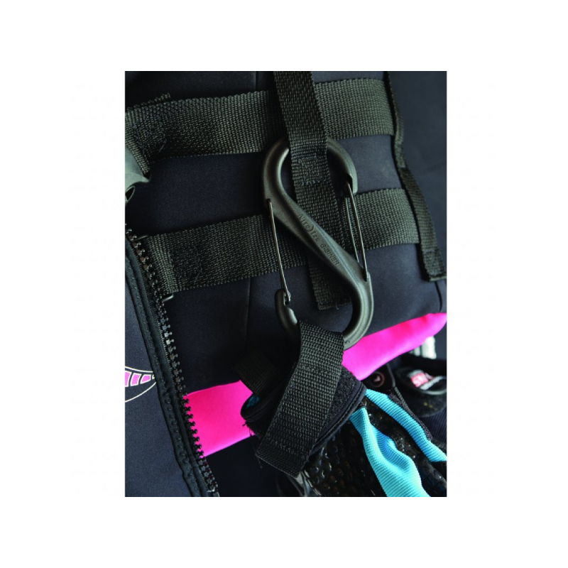 Plastic version of the unique S-carabiner. Made of thermoplastic materials (glass filed nylon) and available in various colors and sizes. The double-sided separate carabiner entry offers an inexhaustible number of application variants. Insurance, fastening, hanging tactical equipment on equipment, hanging keys, mobile phone cases, camping equipment. Just about anything you can think of. For maximum security, you can fasten the equipment to the central part via both entrances, or you can use S carabiners to connect several items together.