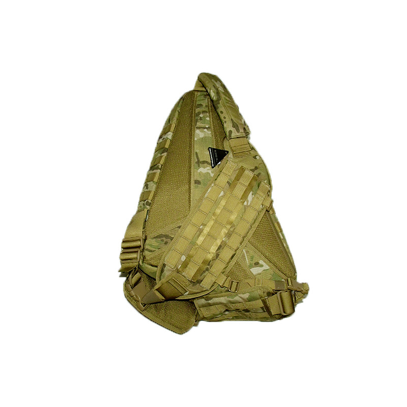 - Courier bag style inverted-Y strap pattern for stability - Fully padded, triangular main compartment ( Approx. 35W x 50H x 10D cm ) with dual zipper door, break-out handle for quick access without opening zipper - Front pocket with side entry zipper door, velcro lined inner surface with 2 removable elastic holders - Transparent map pocket inside main compartment door - MOLLE compatible PALS webbing surfaces for additional attachments - Padded waist strap and bandoleer style shoulder strap for heavier loads and extra MOLLE surfaces - Replaceable shoulder and waist strap for light-weight, plain style usage ( included ) - CORDURA fabric