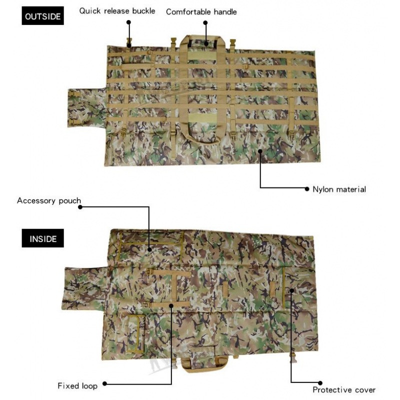 A gun bag for a long guns that also doubles as a shooting mat when unpacked.