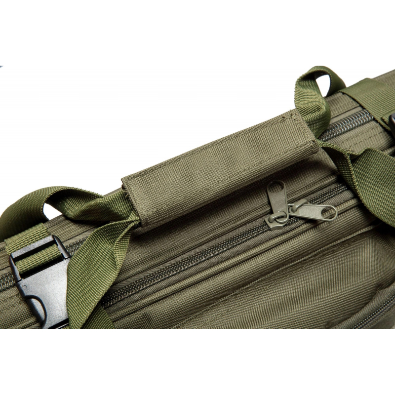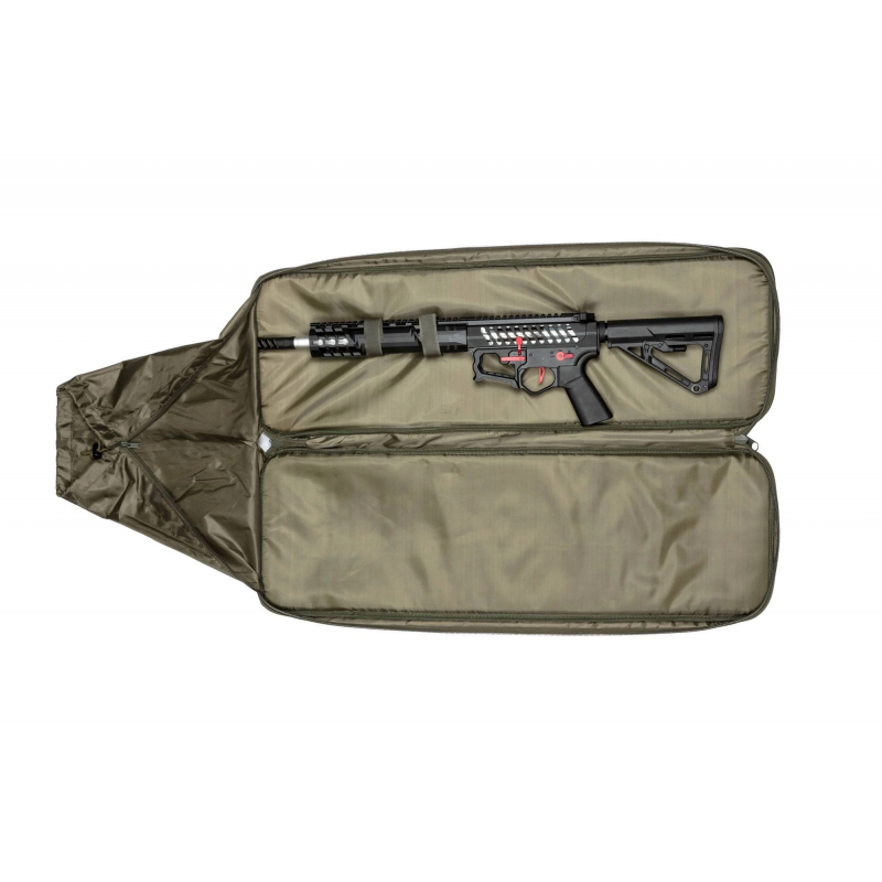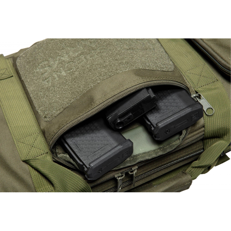 A gun bag by Specna Arms made of durable nylon. The bag can hold a submachine gun with maximum length of 550 mm and a carbine with maximum length of 810 mm. Unfolding the additional sleeve increases the bag’s length to 1150 mm. Thanks to many transport handles and a filling from soft foam, Specna Arms Gun Bag enables safe and comfortable transportation of an airsoft replica or firearm to a playing field, a shooting range or a plane.