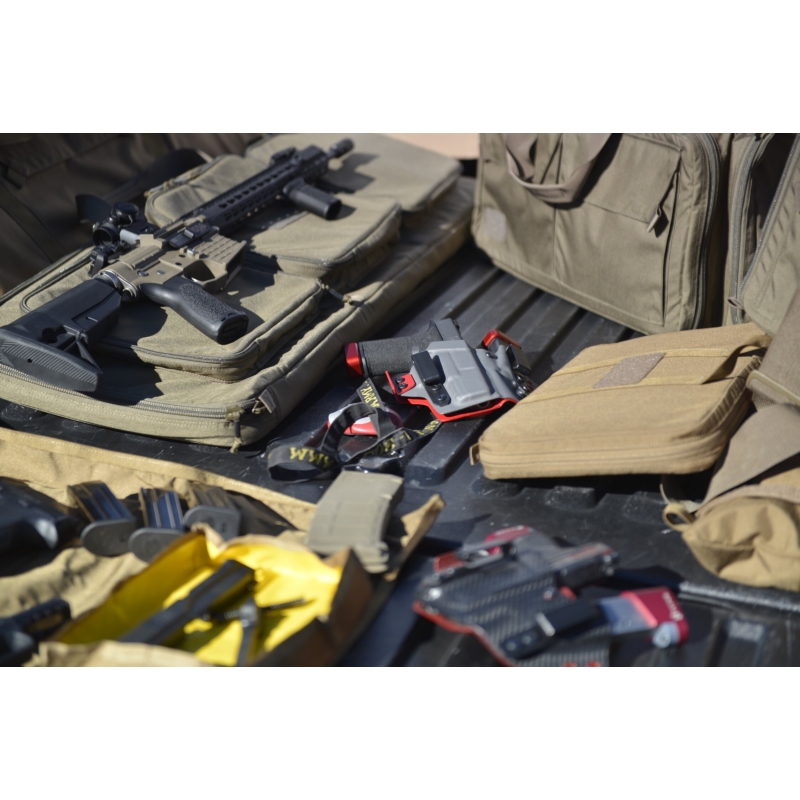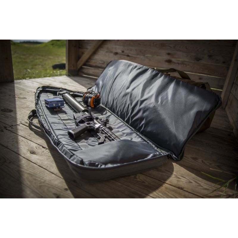 The Double Upper Rifle Bag 18® is designed for secure and convenient transport of two rifles in AR15 or AK style. The bag accommodates an AR15 rifle with optics and an additional upper receiver, or two short AR15 or AK rifles in standard configuration (without sights). The main compartment features a system of adjustable loops to secure the rifles in place during transport. It also includes elastic loops for storing accessories and cleaning tools.