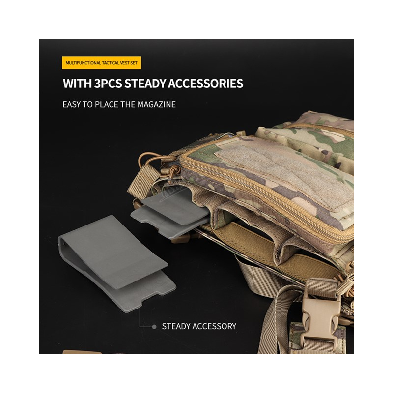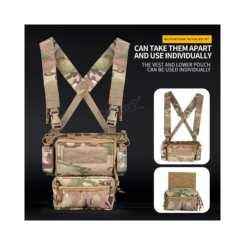 The straps across the back are X-shaped. The straps can be tightened and loosened at will, making the chest rig fit everyone. The straps also have detachable polymer buckles.