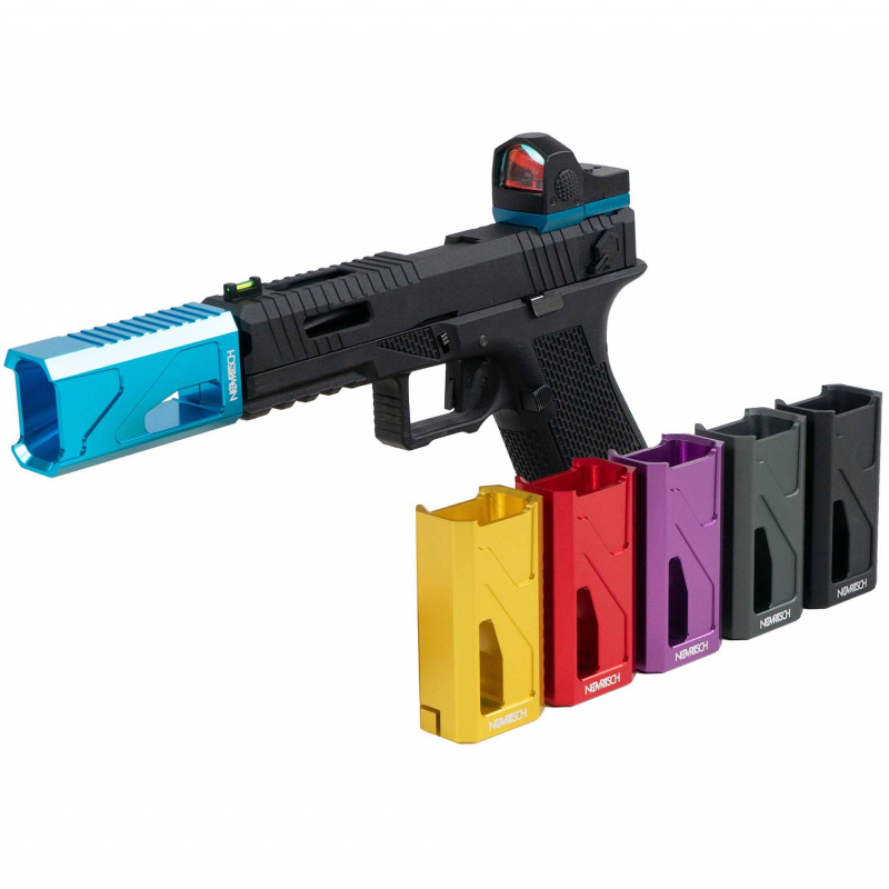 The Amplifier amplifies the sound coming out of the barrel through the conical opening at the muzzle end. This is useful to intimidate opponents or to keep them behind cover.