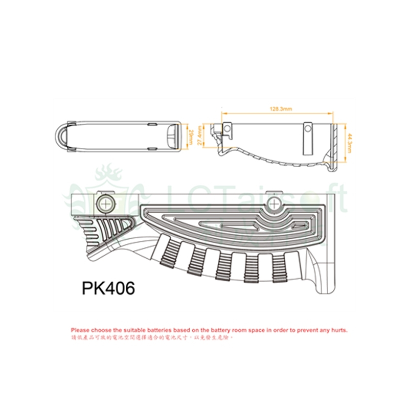 The front enlarged grip in LCT's new design attaches to the RIS rail and also serves as a battery storage compartment!