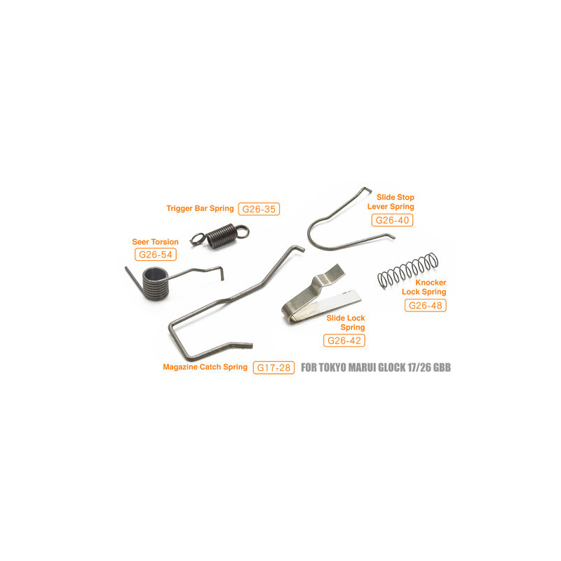 The Guarder steel spring set is an ideal upgrade for gas airsoft pistols from Tokyo Marui, WE, and KJ Works G-Series. Made from high-quality steel, these springs offer significantly improved durability, a longer lifespan, and enhanced functionality compared to standard springs.