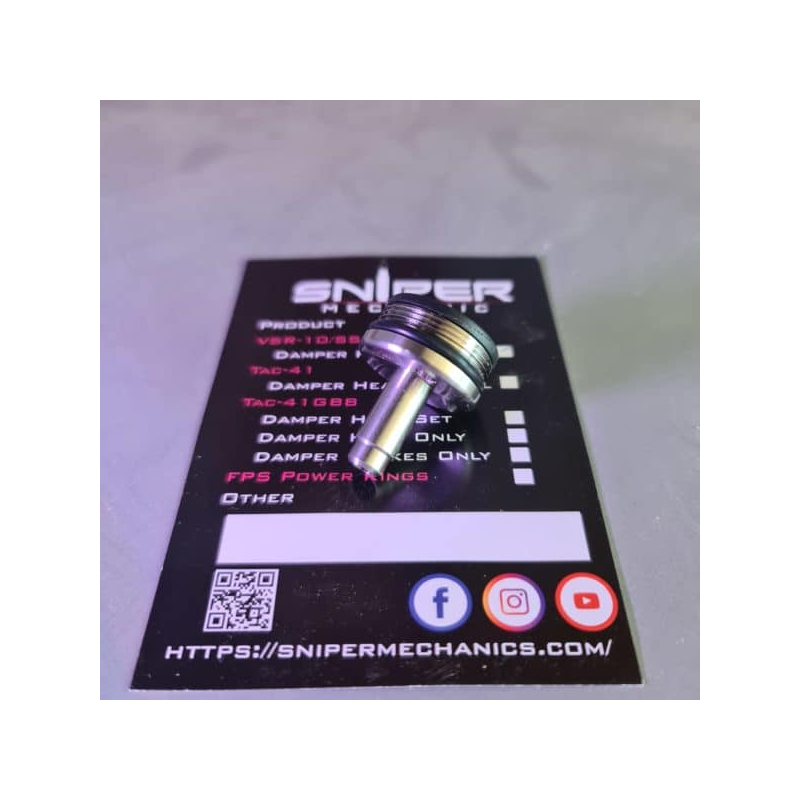 This Damper Cylinder head for VSR10/SSG10 is an upgraded cylinder head designed to pair perfectly with the W.A.S.P. made by Sniper Mechanic.
