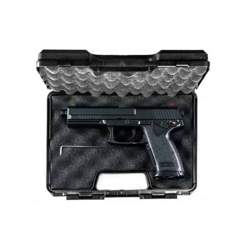 Includes: Gun case, Pistol with metal slide, Gas magazine
