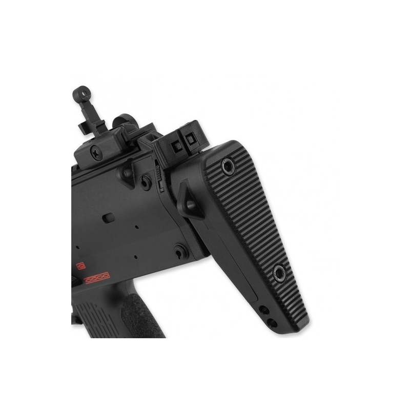 The GBBR version offers cutting-edge technology and craftsmanship. The submachine gun features perfect alignment of the weapon body, functional retractable MP7 stock, and H&K branding, including details.