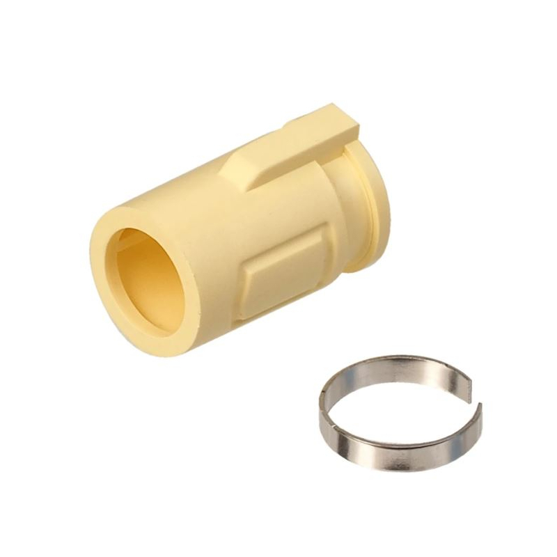 Hop-up buckings are available in various models, each designed for a specific type of inner barrel (AEG/HPA, GBB/VSR, Hybrid), muzzle velocity (shore hardness), outdoor temperature (classic and silicone buckings), and most importantly, their purpose (range or accuracy).