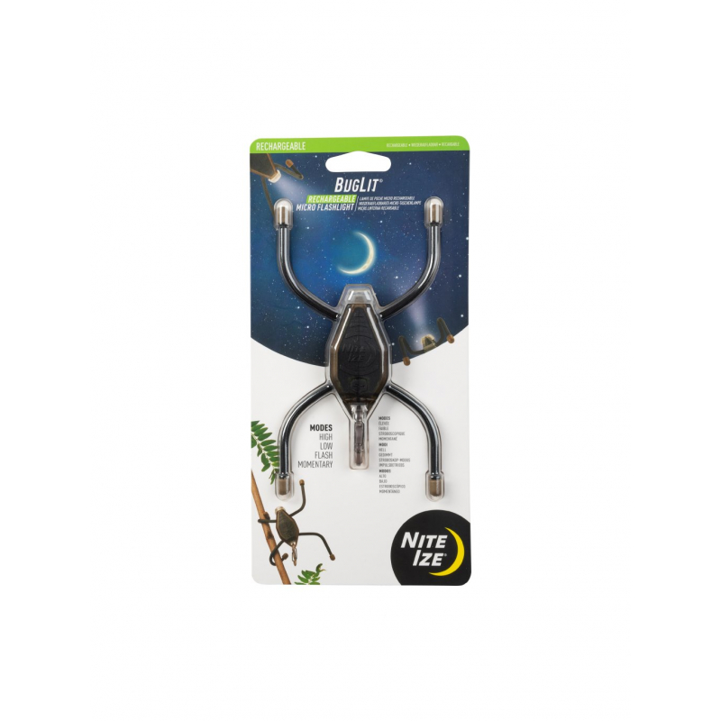 Powerful and fun, the Nite Ize Buglit® rechargeable micro flashlight is designed to put a smile on your face with a combination of a whimsical body and a high-quality working light that lasts.
