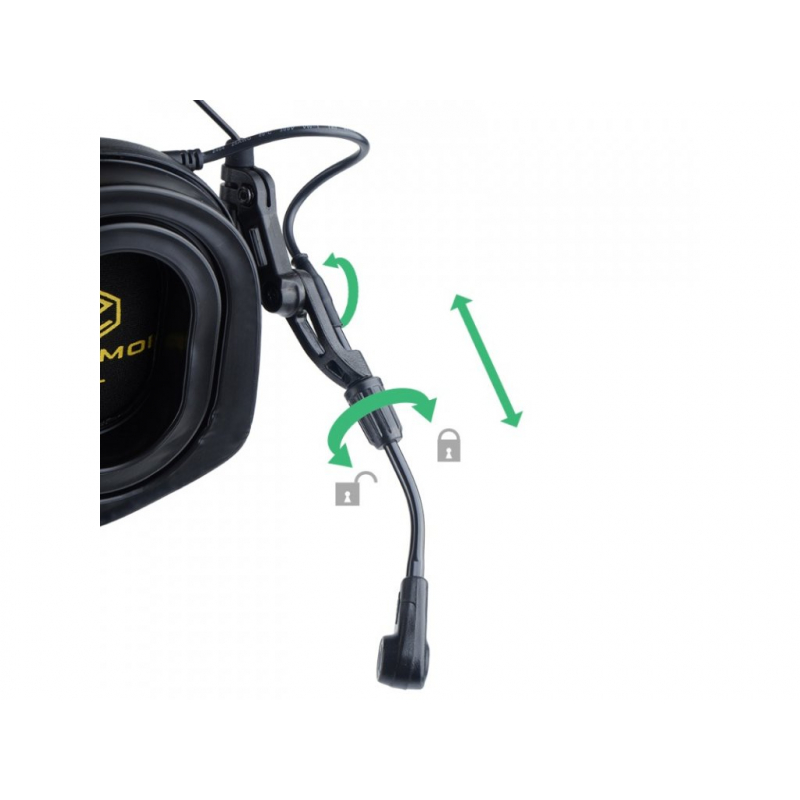 The M32H PLUS electronic tactical headset by EARMOR provides top-notch hearing protection that allows you to protect your hearing from dangerous noise while still being able to hear surrounding sounds and communicate with the rest of your team. The headset features built-in active hearing protection and is invaluable in environments with high noise levels such as shooting ranges, where you may be exposed to excessive noise and face health risks of permanent hearing damage. The principle of operation involves capturing sounds with two directional microphones and reproducing them with speakers inside the headset. This allows the user to hear the surrounding environment and protect their hearing simultaneously. Harmful noises are limited to a safe level of 82 dB, while lower sounds are amplified. The headset for communication utilizes a detachable, two-way microphone, so it won't interfere with aiming. For connection to communication devices such as radios or transceivers, the headset uses a MIL-STD 4-pin plug connector (known as Nexus TP-120 / 7.0 NATO), which needs to be connected to a compatible PTT switch (available here) based on the connector type on the transceiver/radio.