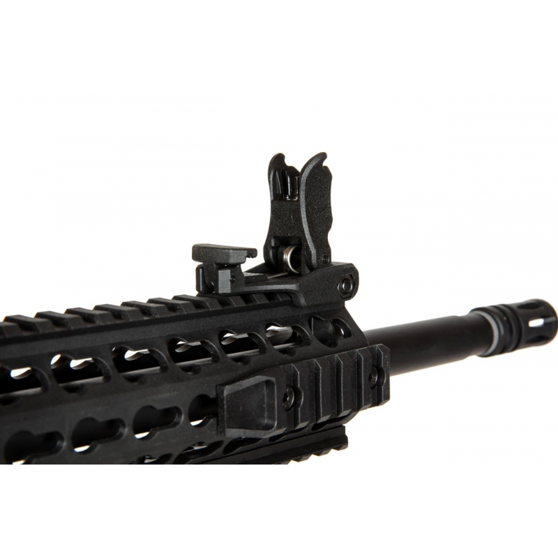 The replica M4 Keymod (SA-F02 FLEX™) is equipped with a MOSFET X-ASR module from the Polish company GATE. This module ensures safe switching and protects the internal parts, improves trigger response and extends battery life, increases the rate of fire, and allows safe use of Li-Pol batteries 7.4V and 11.1V. Thanks to the integrated status LEDs, the module can diagnose basic malfunctions in the weapon.