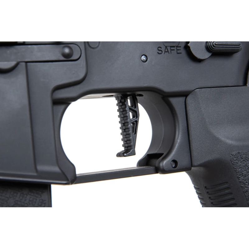 The rifle boasts high-quality external craftsmanship with a Nano Coating surface treatment, offering increased scratch resistance and damage protection. The matte-painted body gives it an elegant look. The ergonomic AR15 design and modern construction ensure comfortable handling and easy operation. The CNC metal M-LOK handguard allows the attachment of various accessories such as grips, AN/PEQ box, flashlight, etc.