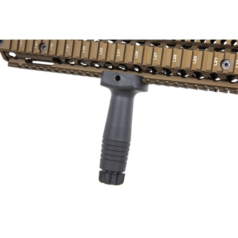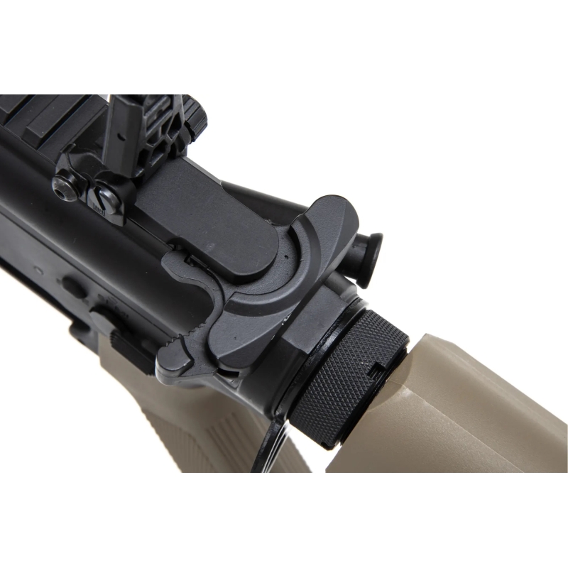 The rifle boasts high-quality external craftsmanship with a Nano Coating surface treatment, offering increased scratch resistance and damage protection. The matte-painted body gives it an elegant look. The ergonomic AR15 design and modern construction ensure comfortable handling and easy operation. The CNC metal RIS handguard MK18 Daniel Defence allows the attachment of various accessories such as grips, AN/PEQ box, flashlight, etc.