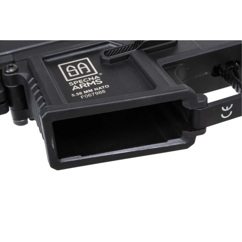 The Specna Arms M4 Carbine RL M-LOK Gen2 (SA-F05-RL FLEX™ BLDC™ HAL ETU™) stands out with a high-quality nylon receiver featuring a matte finish and a very realistic look. Thanks to glass-fiber reinforcement it’s very durable and lightweight. The outer barrel is metal, and the screws, ejection cover and pins are steel. The ergonomic AR15 design and modern RL construction provide a comfortable grip and easy handling—this rifle just fits your hand! The M-LOK handguard lets you mount accessories like a grip, AN/PEQ box, flashlight, etc. With the adjustable Light Ops stock there’s room for Buffer stick battery. Overall, it’s a rifle that combines low weight and premium internals with an attractive price.