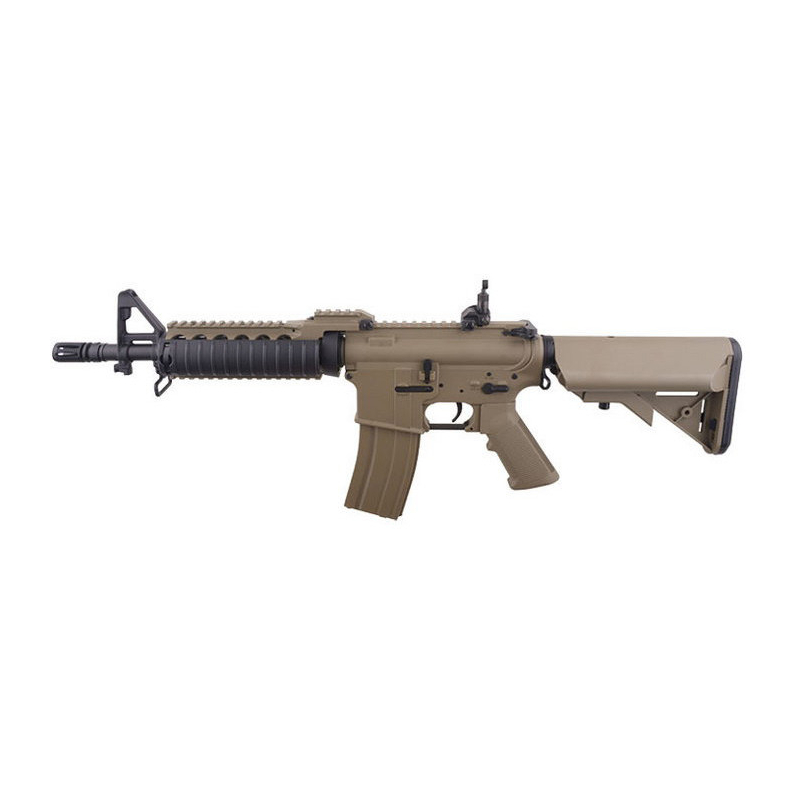 CYMA made M4 RAS II CQB. Typical with the full metal RIS handguard, mounted with the body. So there is not wobble. Chinese manufacturer CYMA had decided to relese own M4/M16 series. As it is usual, the gun is made of metal with many accessories. Among the advantages we can mention high velocity performance, working bolt catch, metal HopUp chamber and 8mm bearings. |