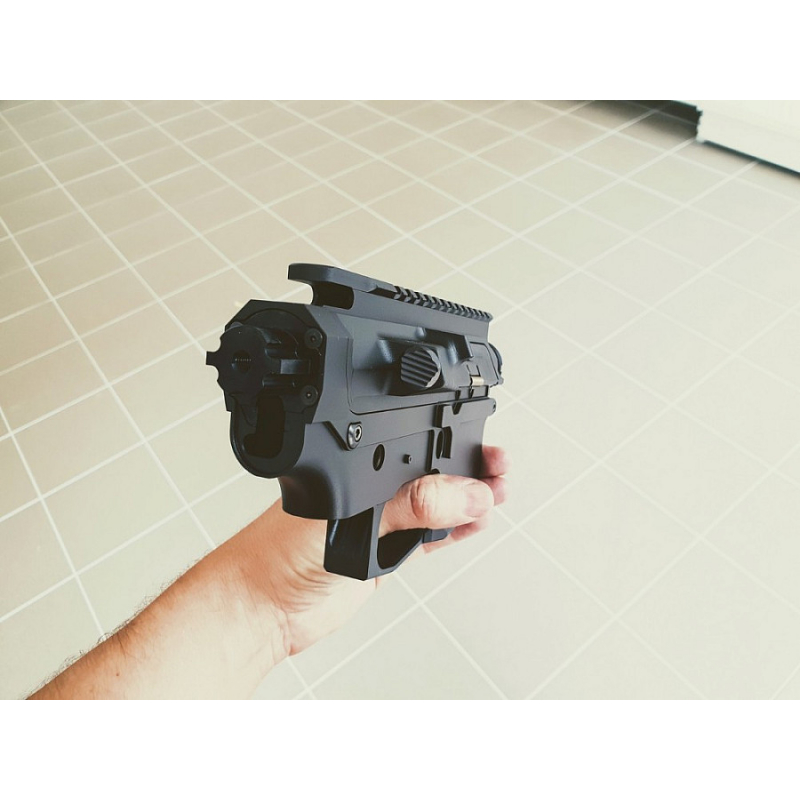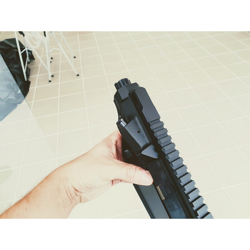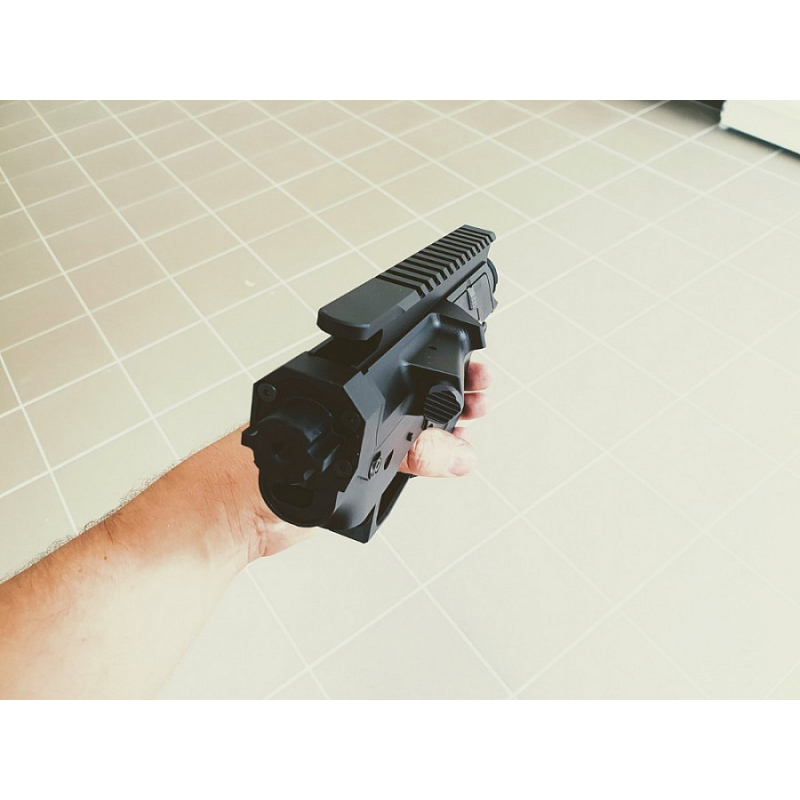 Made with manufacturing processes akin to the real firearms from aircraft-grade aluminum EN AW 7075 T651, milled RIS rail, integrated Trigger guard.