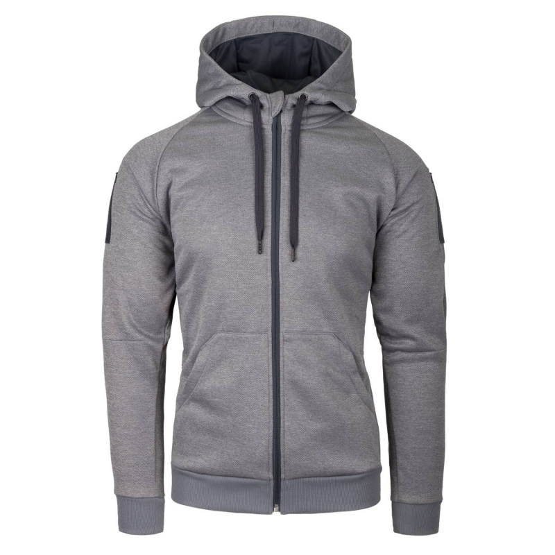 The Urban Tactical Hoodie is a lightweight zip-up hoodie with a simple, low-profile design, making it ideal for city or outdoor wear. Two classic front pockets are deep enough to store items you need to keep within reach. In colder weather, they will keep your hands warm and protect them from the wind. Inside these pockets, you'll find additional hidden pockets that close with a zipper. On the chest, there are two mesh pockets, perfect for storing a wallet or phone. Hidden zippers on the shoulders lead to two additional pockets. If you enjoy customizing your clothing with patches, you'll appreciate the two VELCRO panels on the biceps and one on the back of the hood.