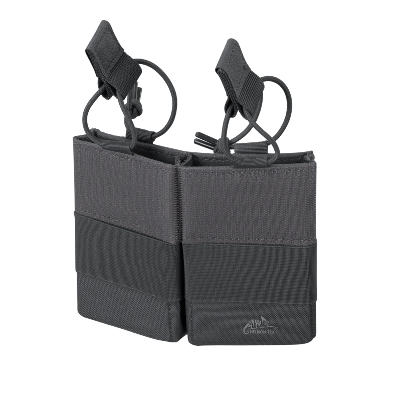 Insert Pouch COMPETITION by Helikon-Tex in Shadow Grey. The pouch is designed for 2 pistol magazines (Glock, CZ, Hi-Capa, Beretta, Sig, etc.) This is an open pouch with a securing cord with pull tab. The magazine is securely held by an elastic band around the pouch. Attachment via hook-and-loop only (no MOLLE webbing).