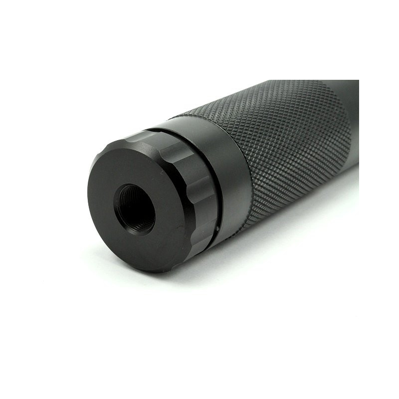 Full metal sound suppressor for all airsoft guns. Lenght 210mm, width 40mm. Suppressor has M14 counter clockwise thread.